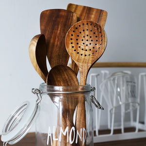 The perfect gift: it can be safely used on all kitchen utensils, wash hands, and easily clean with hot soapy water. We believe that the wooden kitchen utensil set is the perfect complement to the kitchen. For those interested in cooking, it is a simple, inspiring and innovative cooking gadget
