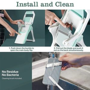 Compact and Space-Saving Design: SliceSmart’s compact structure takes up minimal counter and storage space, making it perfect for kitchens of any size. It includes a cleaning brush that conveniently stores in the slicer’s body, keeping your prep area clutter-free. This smart design means you can keep your kitchen organized and have an efficient slicing tool on hand without crowding your cabinets.