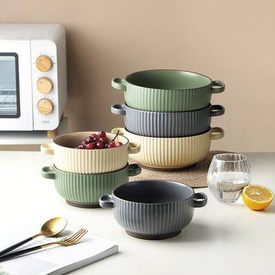 Color: 7.6-inch binaural bowl-beige, 7.6-inch binaural bowl-dark green, 7.6-inch binaural bowl-dark blue, 7.6-inch binaural bowl-white, 6-inch binaural bowl-beige, 6-inch binaural bowl-dark green , 6-inch binaural bowl-dark blue, 6-inch binaural bowl-white